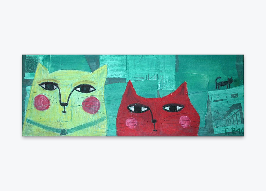 Mischtechnik auf Canvas (100×70 cm), Materialien: Stoff, Zeitung, Acryl, Ölkreide